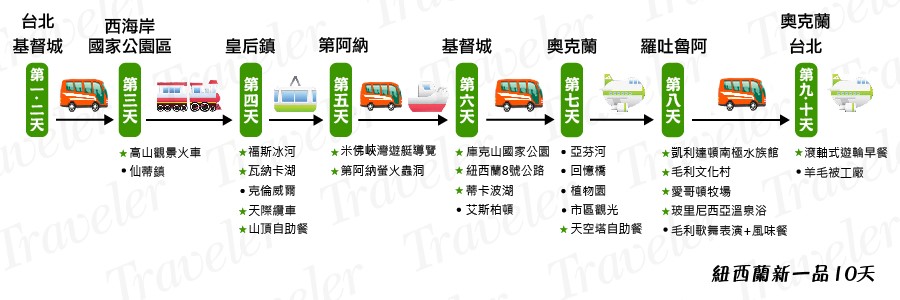 行程: 紐西蘭當地如遇洪水、大雪、雷雨等氣候因素,導致行程受影響,基於旅客生命安全以及團體操